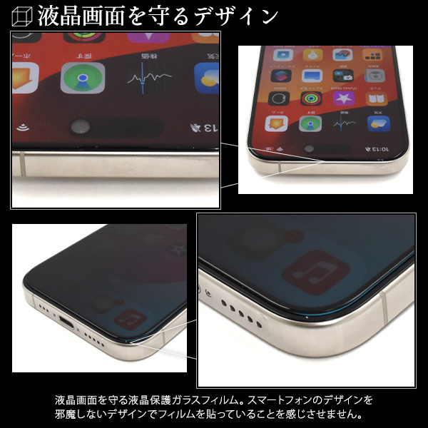 横からの覗き見を防止! iPhone 15 Pro用覗き見防止液晶保護ガラスフィルム