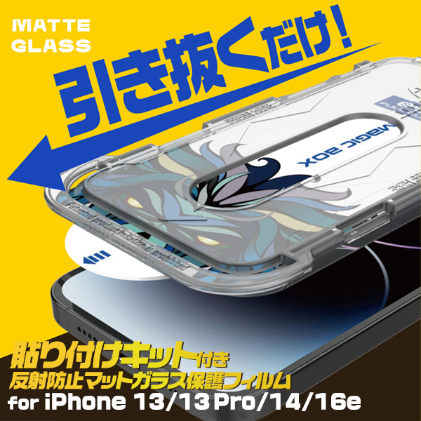 ワンタッチ貼り付け! iPhone 13/13 Pro・iPhone14用 貼り付けキット付き反射防止マットガラスフィルム