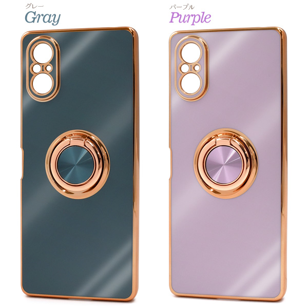 <スマホケース>Xperia 5 V SO-53D/SOG12/XQ-DE44用スマホリング付メタリックバンパーソフトカラーケース