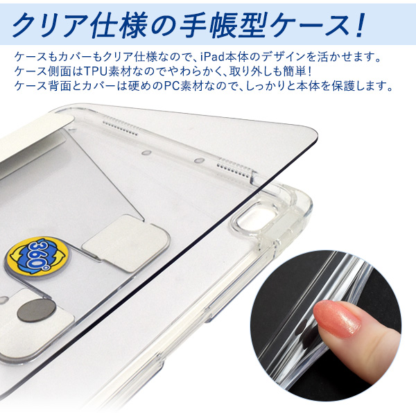 iPad 第10世代 (2022年)用回転式スタンド付き手帳型クリアケース