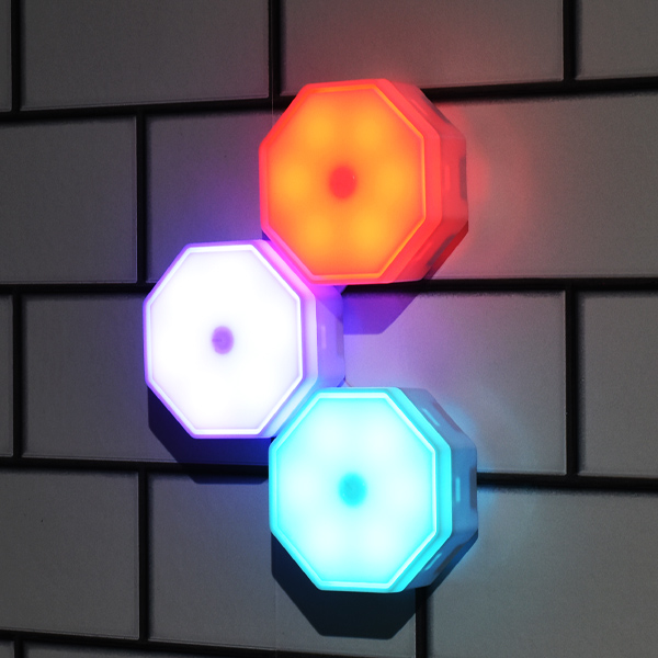 組み合わせ自由。16色のカラーバリエーション! 壁掛け式 八角形LEDライト 3個セット