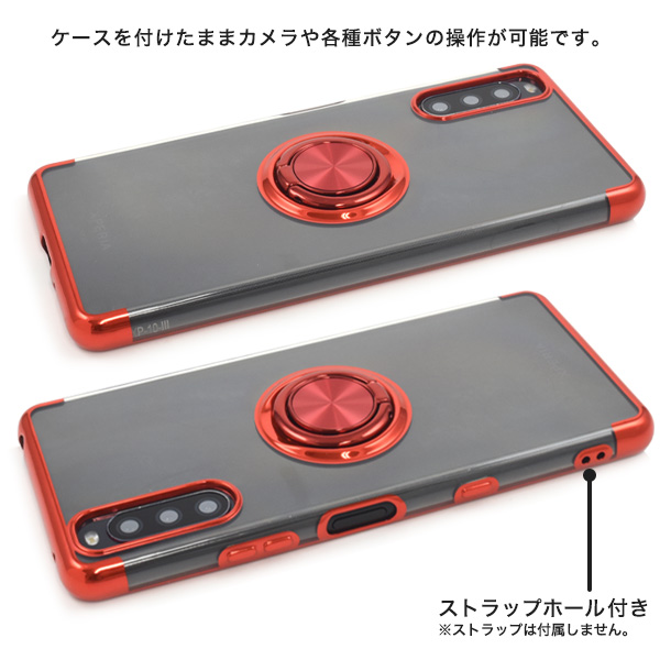 Xperia 10 III/Xperia 10 III Lite用スマホリング付きメタルカラーバンパーソフトクリアケース