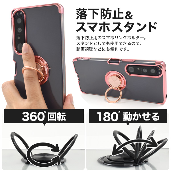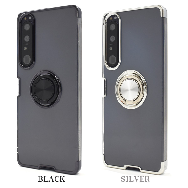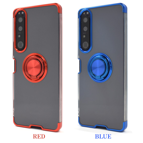 Xperia 1 IV SO-51C/SOG06/A201SO/XQ-CT44用スマホリング付きメタルカラーバンパーソフトクリアケース