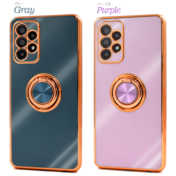 <スマホケース>Galaxy A52 5G SC-53B用スマホリング付メタリックバンパーソフトカラーケース