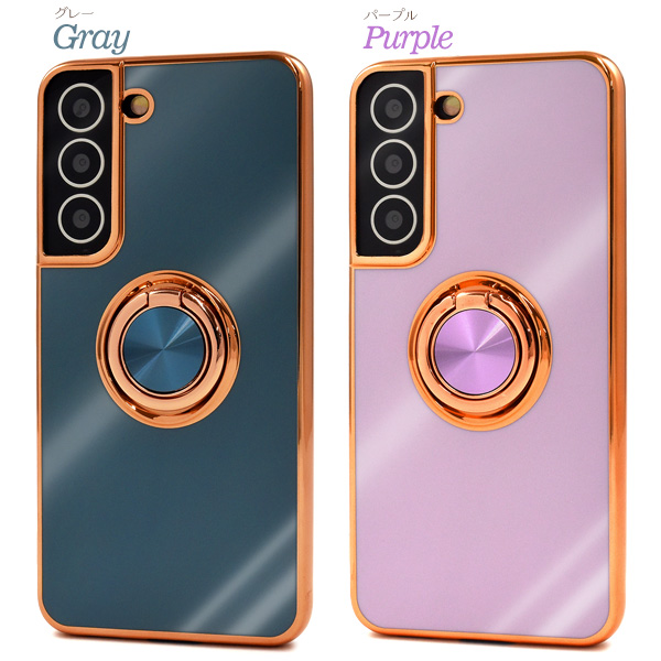 <スマホケース>Galaxy S22 SC-51C/SCG13用スマホリング付メタリックバンパーソフトカラーケース