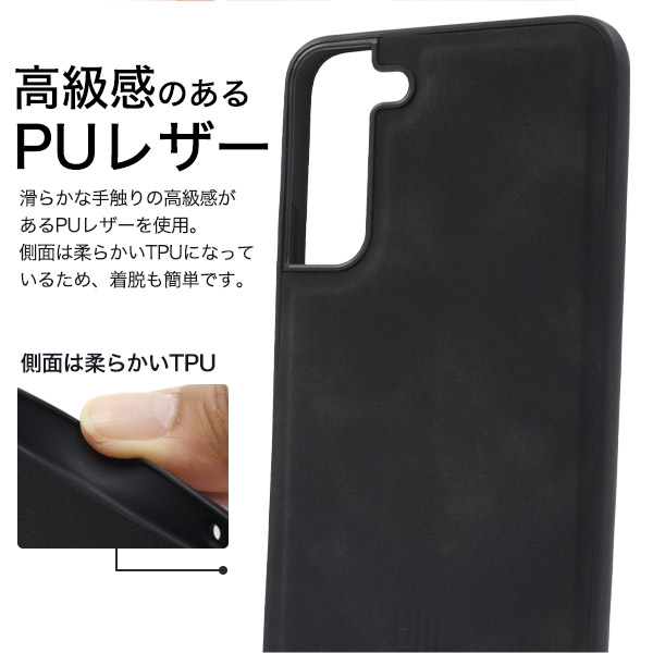 落ち着きあるカラーのPUレザーケース MagSafe対応 Galaxy S22+用PUレザー背面ケース