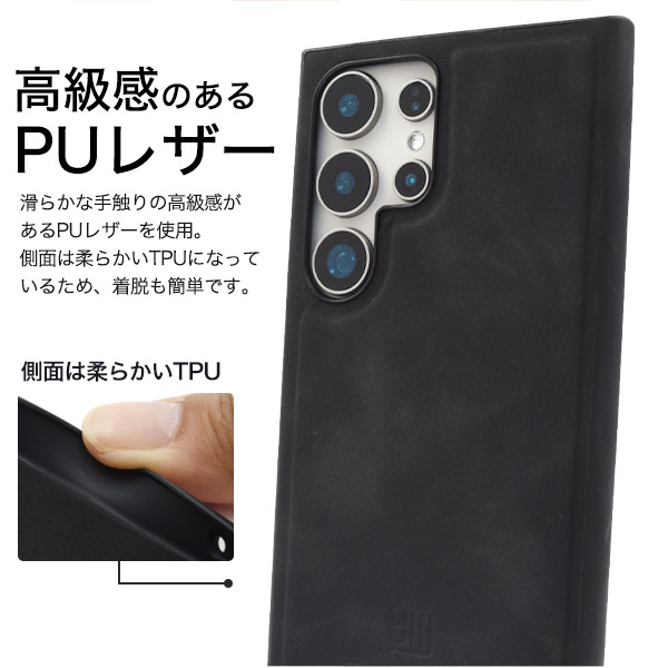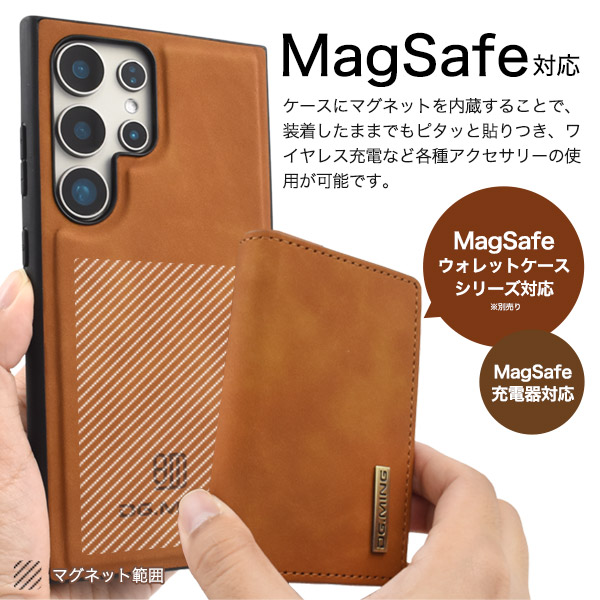 落ち着きあるカラーのPUレザーケース MagSafe対応 Galaxy S24 Ultra用PUレザー背面ケース