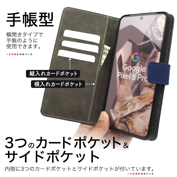 <スマホケース>ケースを付けたままMagSafe対応!Google Pixel 8 Pro用カラーレザー手帳型ケース