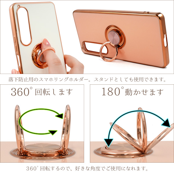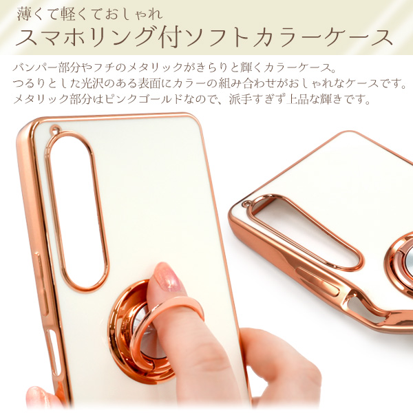 Xperia 1 VI SO-51E/SOG13/A401SO/XQ-EC44用スマホリング付メタリックバンパーソフトカラーケース