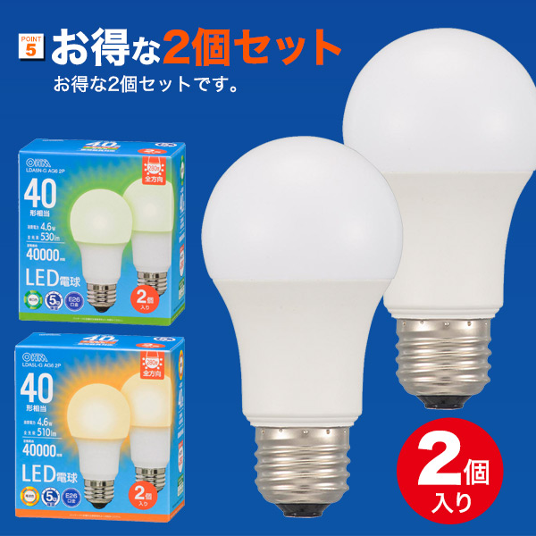 LED電球 E26 40W形 密閉器具対応 2個セット