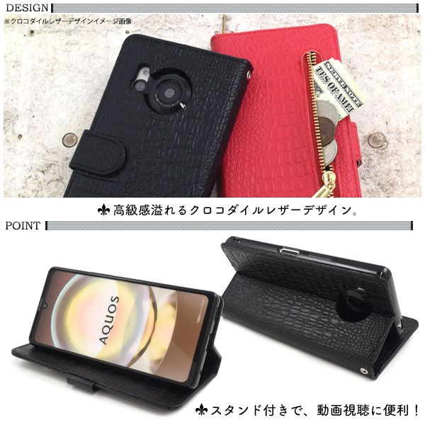 AQUOS R8 SH-52D/SH-R80用クロコダイルレザーデザイン手帳型ケース