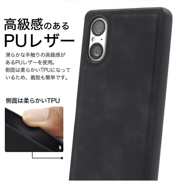 落ち着きあるPUレザーケース MagSafe対応 Xperia 5 V SO-53D/SOG12/XQ-DE44用PUレザー背面ケース