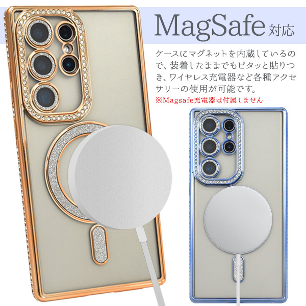 <スマホケース>Galaxy S24 Ultra SC-52E/SCG26用MagSafe対応メタリックカラーラインストーンケース