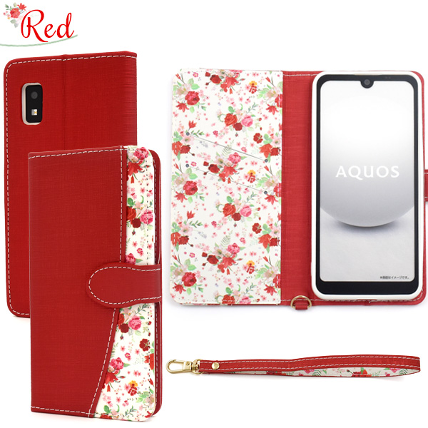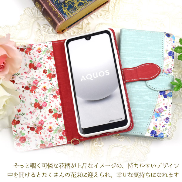 <スマホケース>AQUOS wish3 SH-53D/A302SH/A303SH/SH-M25用ハッピーブーケ手帳型ケース