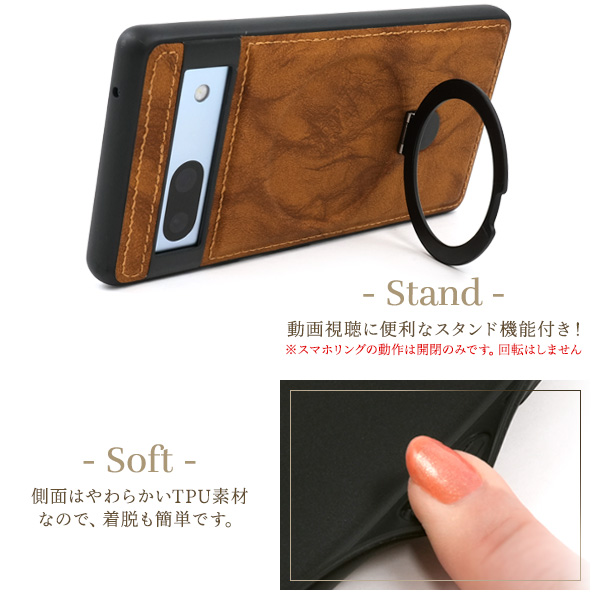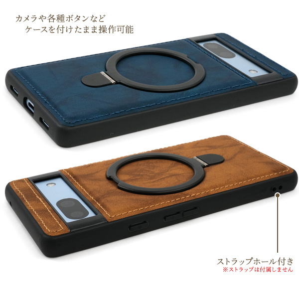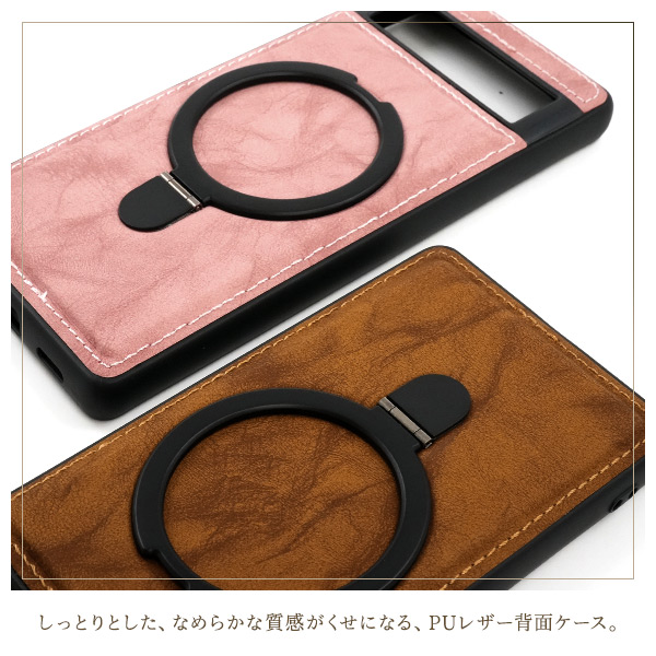 <スマホケース>Google Pixel 7a用MagSafe対応リング付きPUレザー背面ケース