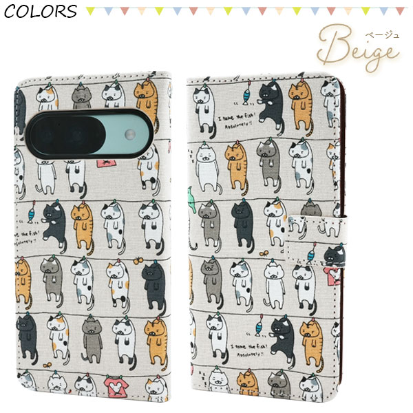<スマホケース>Google Pixel 9/9 Pro用\にゃー!/ 干されてる猫手帳型ケース