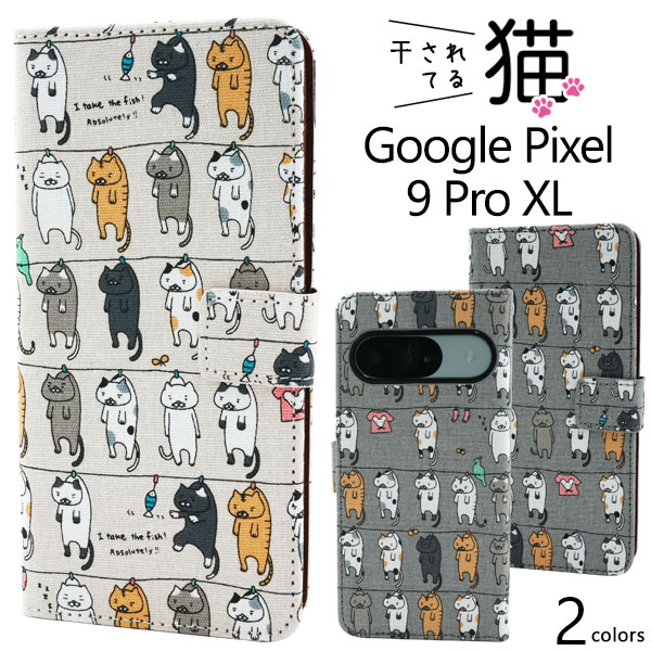 <スマホケース>Google Pixel 9 Pro XL用\にゃー!/ 干されてる猫手帳型ケース