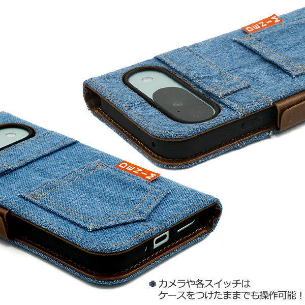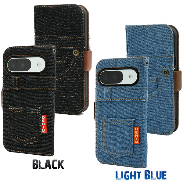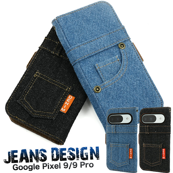 Google Pixel 9/9 Pro用ジーンズデザイン手帳型ケース(デニムデザイン手帳型ケース)
