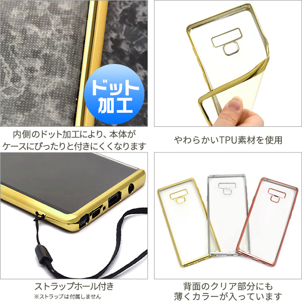 <スマホケース>Galaxy Note9 SC-01L/SCV40用メタリックバンパーソフトクリアケース