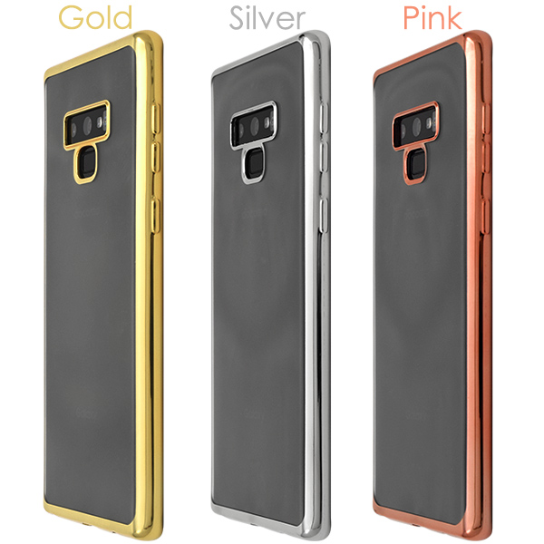Galaxy Note9 SC-01L/SCV40用のメタリックバンパーソフトクリアケース。