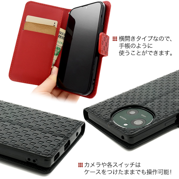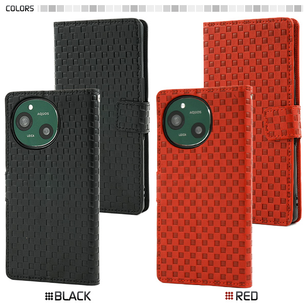<スマホケース>AQUOS R9 SH-51E/A401SH/SH-M28用市松模様デザイン手帳型ケース