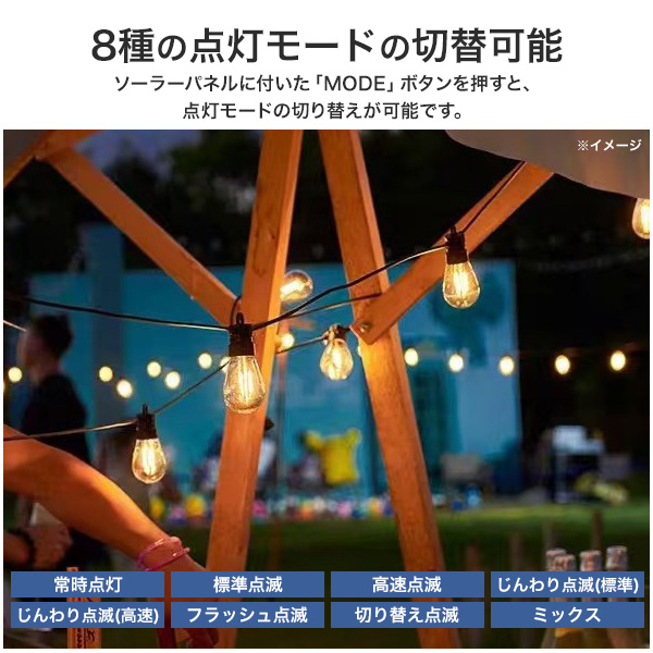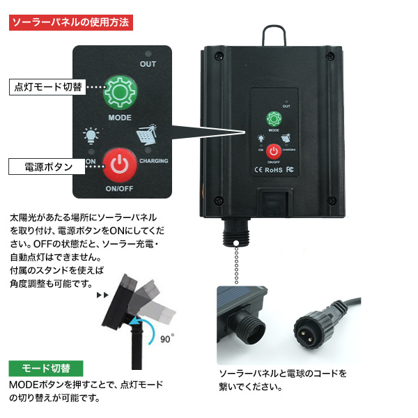 電源不要!自動で点灯。 ソーラー充電式 LEDストリングライト 10m