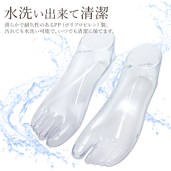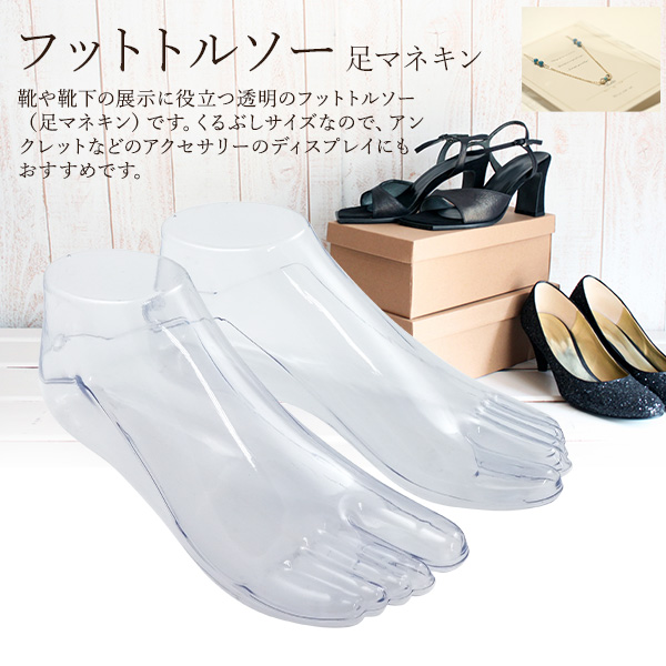 靴や靴下の展示に役立つ透明のフットトルソー(足マネキン)です。