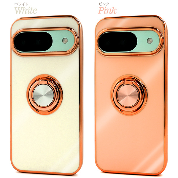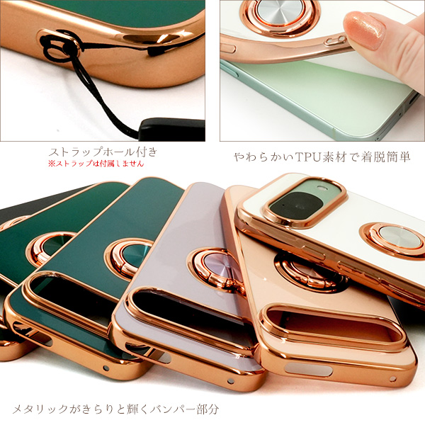 <スマホケース>Google Pixel 9/9 Pro用スマホリング付メタリックバンパーソフトカラーケース