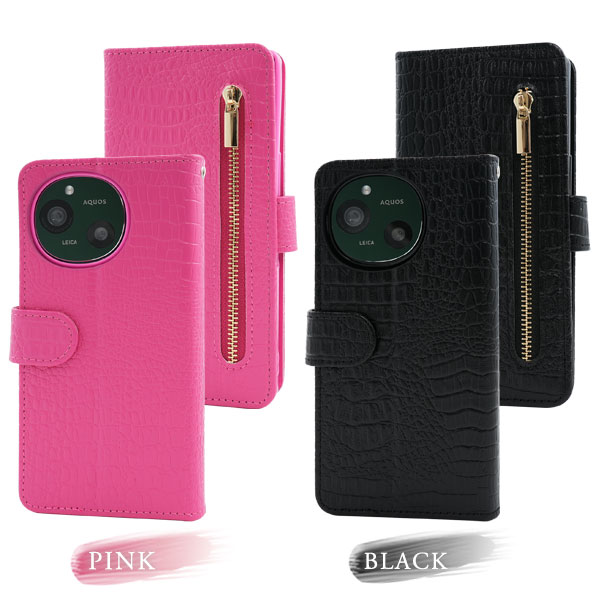 <スマホケース>AQUOS R9 SH-51E用クロコダイルレザーデザイン手帳型ケース