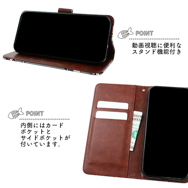 | 注意事項 | ★生地を取る場所により、柄が少し変わる場合があります。 ★広角モードで撮影すると、ケースが映り込む場合があります。 ※画像の色調はご使用のモニターの機種や設定により実際の商品と異なる場合があります。 ※本製品はマグネットを使用しておりますのでクレジットカードなどの磁気カードの収納は避け、カードの注意事項をよくご確認の上ご使用ください。 読み取り等ができなくなる恐れがあります。 ※本製品に収納された、カードのデータ等が喪失された場合におきましても、当社では一切保証致しかねます。 ※長時間接触していたり、強い力で擦れるとスマートフォンに色移りする場合がございます。 ※本製品をスマートフォンに装着する際には本体や本製品に付着したゴミやホコリをよく取り除いてください。ホコリ等がついたまま装着すると、スマートフォンに傷がつく恐れがあります。 ※本製品は強い衝撃からスマートフォンを保護することは出来ません。 ※スマートフォンは付属しません。 ※ライセンス商品ではありません。 ※カードは付属しません。 |