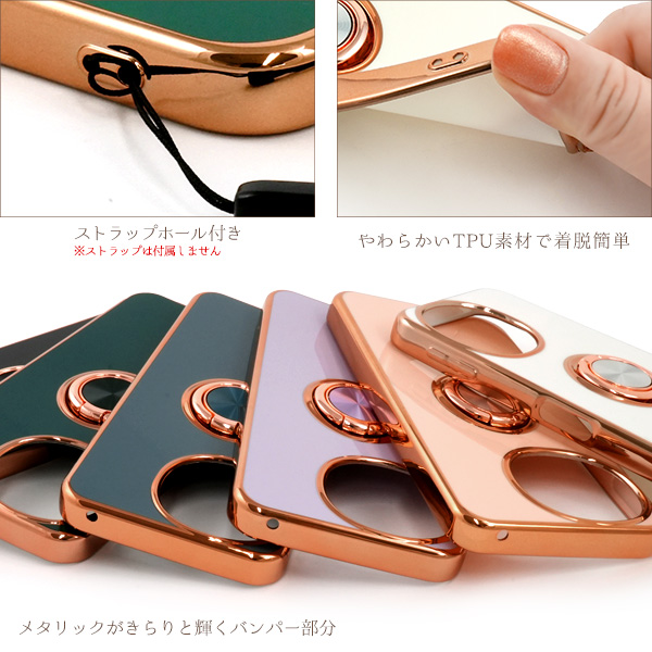AQUOS sense9 SH-53E/SHG14/A405SH/SH-M29用スマホリング付メタリックバンパーソフトカラーケース