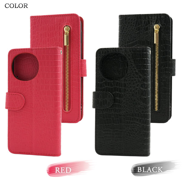 クロコダイルレザーデザインの手帳型ケース。