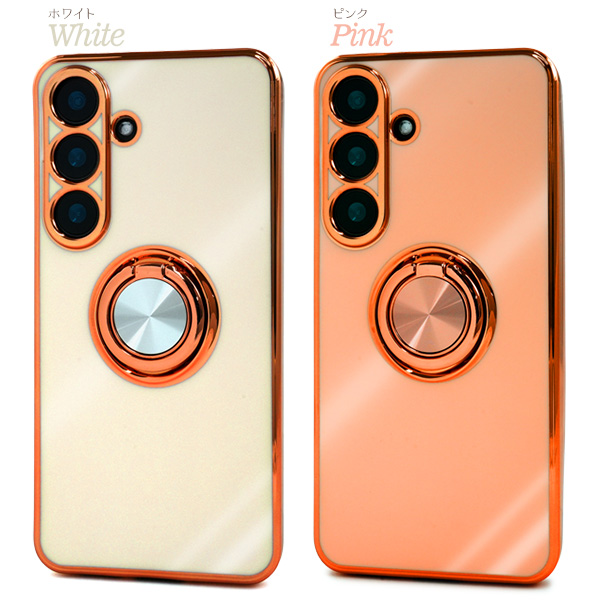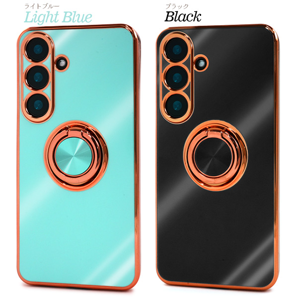 <スマホケース>Galaxy S25用スマホリング付メタリックバンパーソフトカラーケース