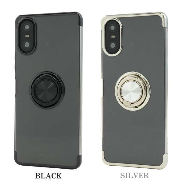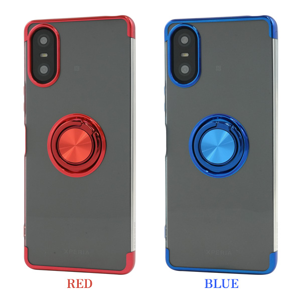 Xperia 10 VI SO-52E/SOG14/A402SO/XQ-ES72用スマホリング付きメタルカラーバンパーソフトクリアケース