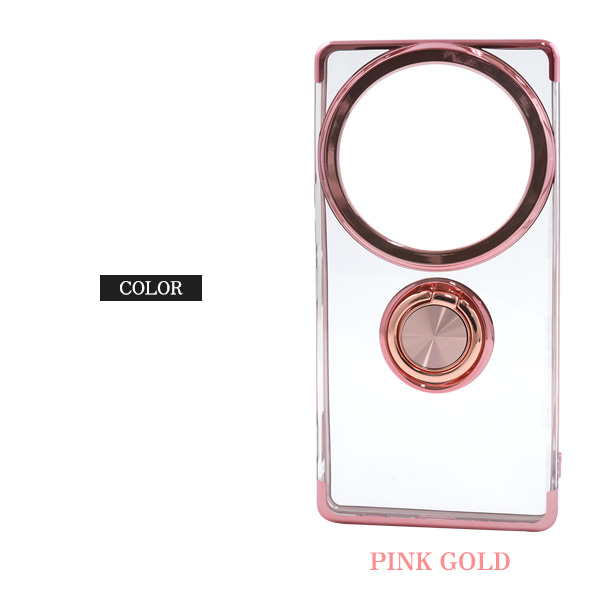 AQUOS R9 pro SH-54E/SH-M30用スマホリング付きメタルカラーバンパーソフトクリアケース