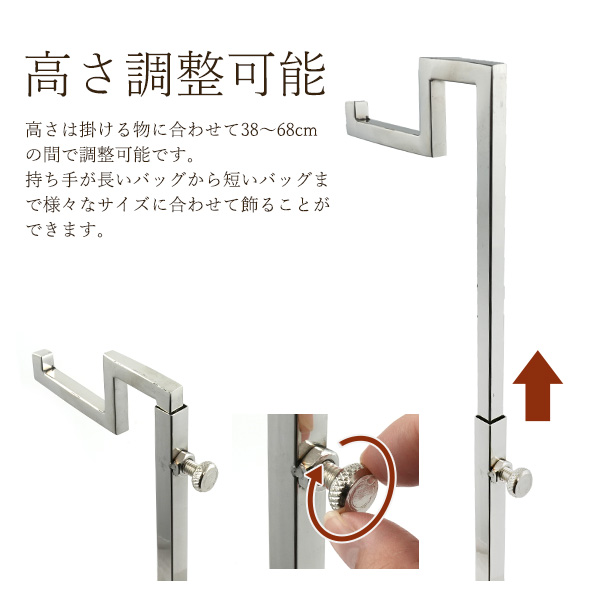 バッグや帽子の展示に。高さ調整可能 バッグハンガー (バッグ掛けスタンド) 高さ38~68cm