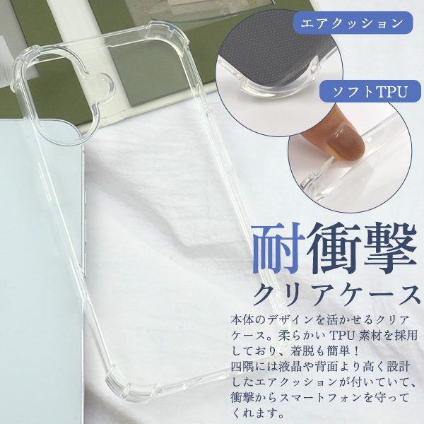 本体のデザインを活かせる耐衝撃クリアケース。