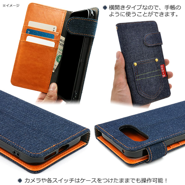 デニムデザインの手帳型ケース。