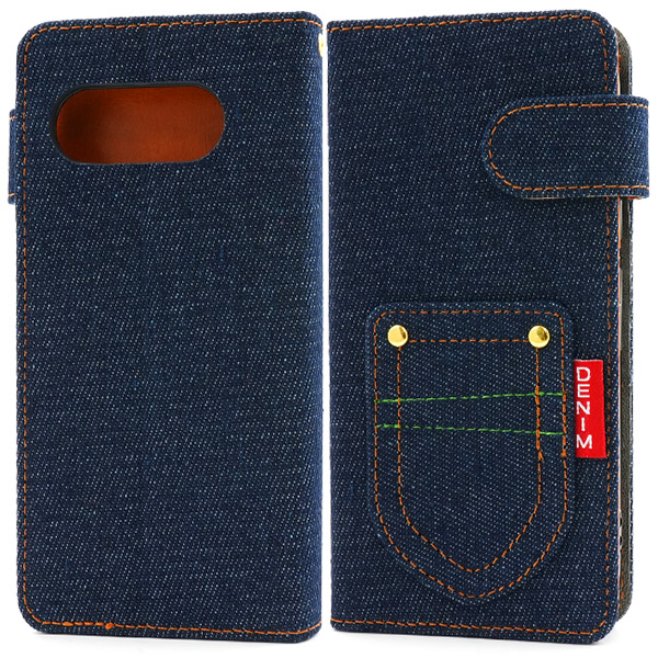 <スマホケース>Google Pixel 9a用ポケットデニムデザイン手帳型ケース