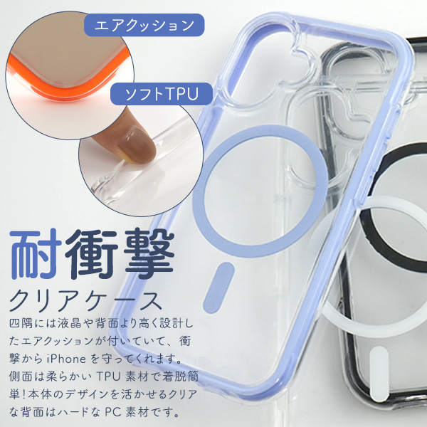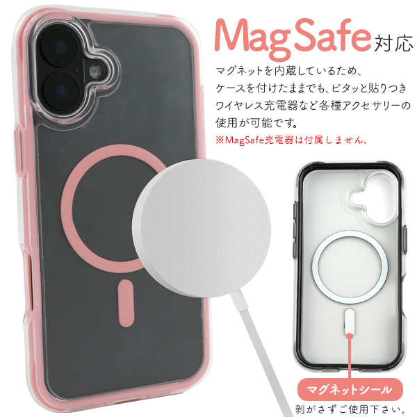 <スマホケース>iPhone 16 Plus用 MagSafe対応 耐衝撃クリアケース