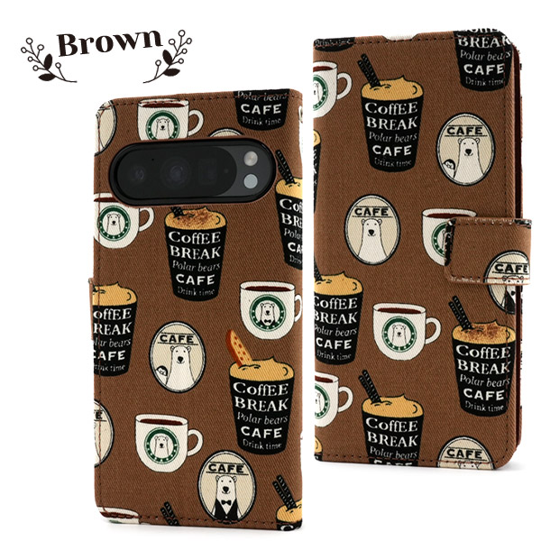 <スマホケース>Google Pixel 9/9 Pro用 シロクマ&コーヒーデザイン手帳型ケース
