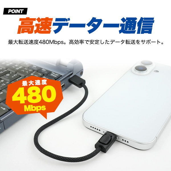 最大転送速度480Mbps。高効率で安定したデータ転送をサポート。