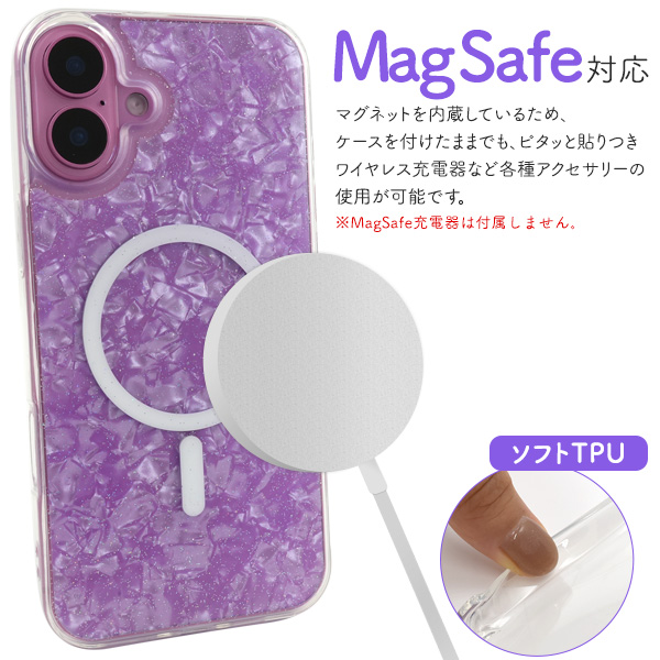 <スマホケース>iPhone 16 Plus用MagSafe対応キラキラシェルケース