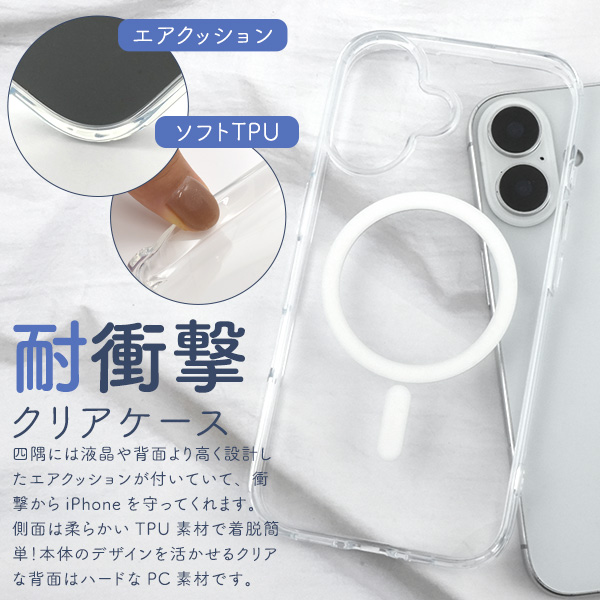 【スマホケース】iPhone 16用 MagSafe対応 耐衝撃クリアケース