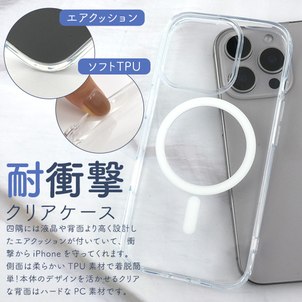 【スマホケース】iPhone 16 Pro用 MagSafe対応 耐衝撃クリアケース