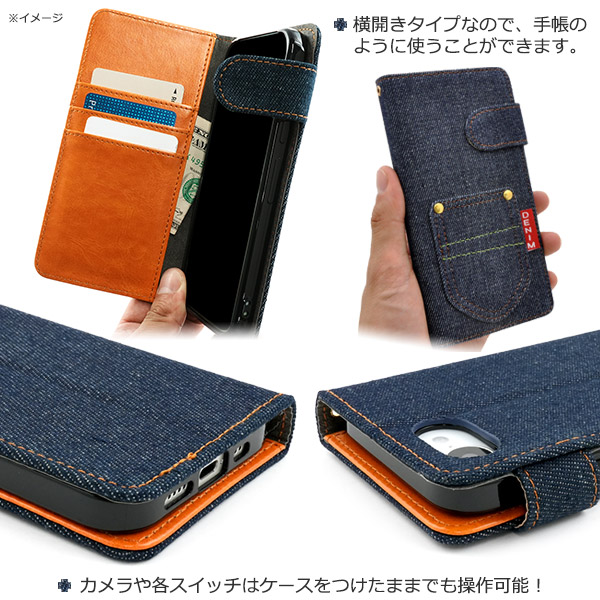 デニムデザインの手帳型ケース。