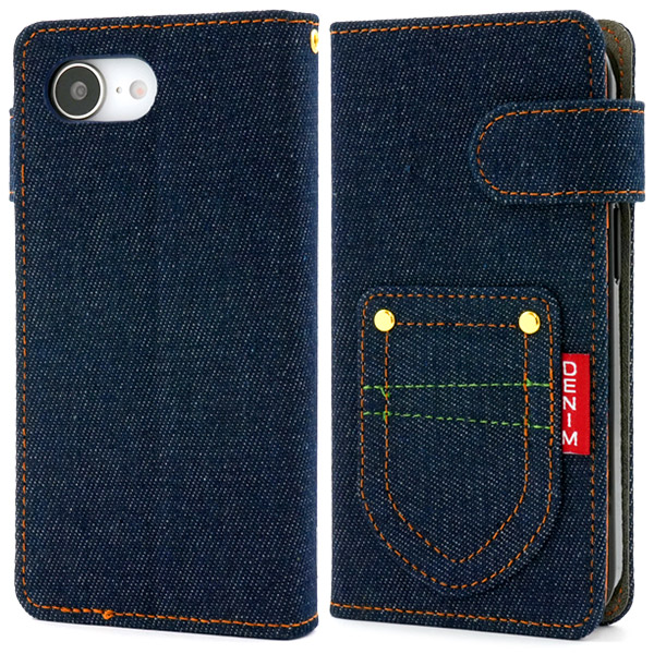<スマホケース>iPhone 16e用ポケットデニムデザイン手帳型ケース