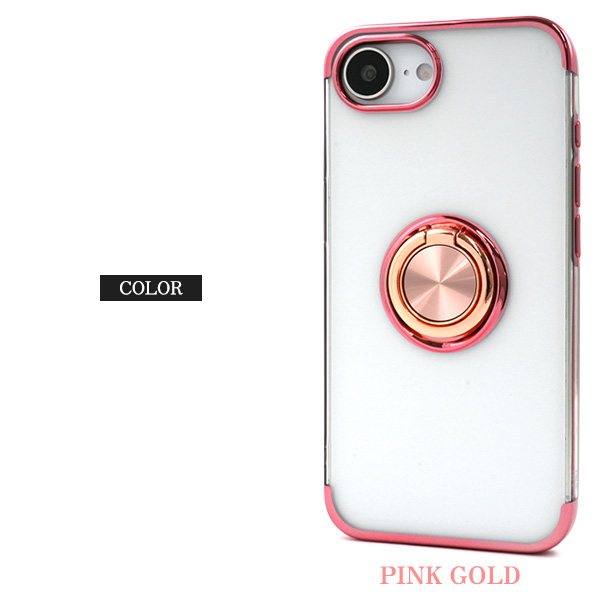 <スマホケース>iPhone 16e用スマホリング付きメタルカラーバンパーソフトクリアケース