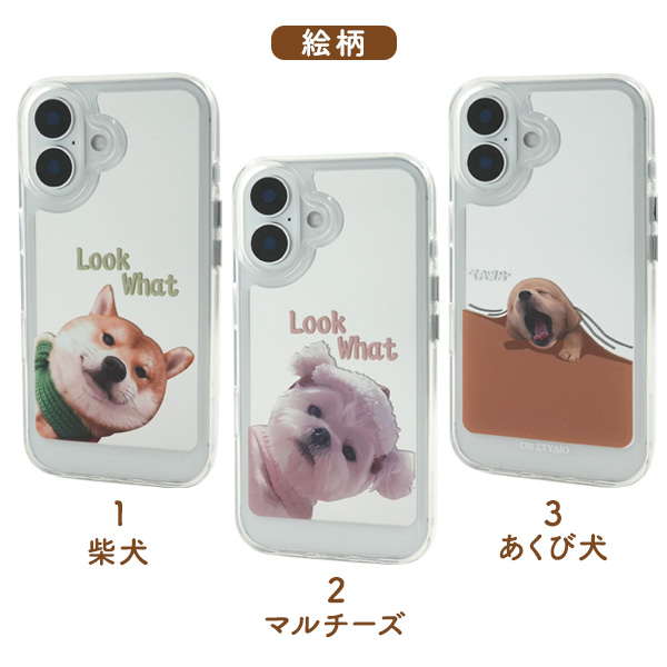 | サイズ | 対応機種 iPhone 16 種類 1.柴犬/2.マルチーズ/3.あくび犬/4.あくび猫/5.おんぶ猫/6.ピンク猫/7.みどり猫/8.めがね犬/9.白猫黒猫 サイズ(約) 縦150×横76×厚み13mm 重さ(約) 30g |