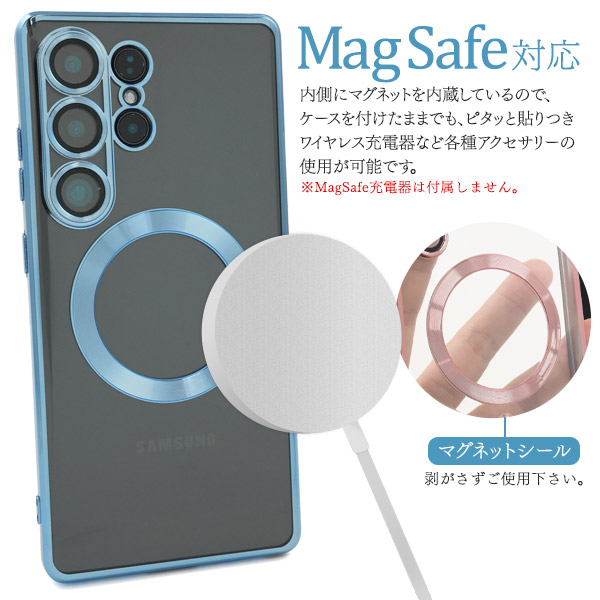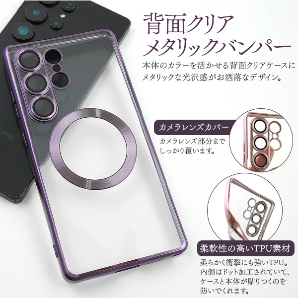 <スマホケース>Galaxy S25 Ultra SC-52F用MagSafe対応メタリックバンパーソフトクリアケース